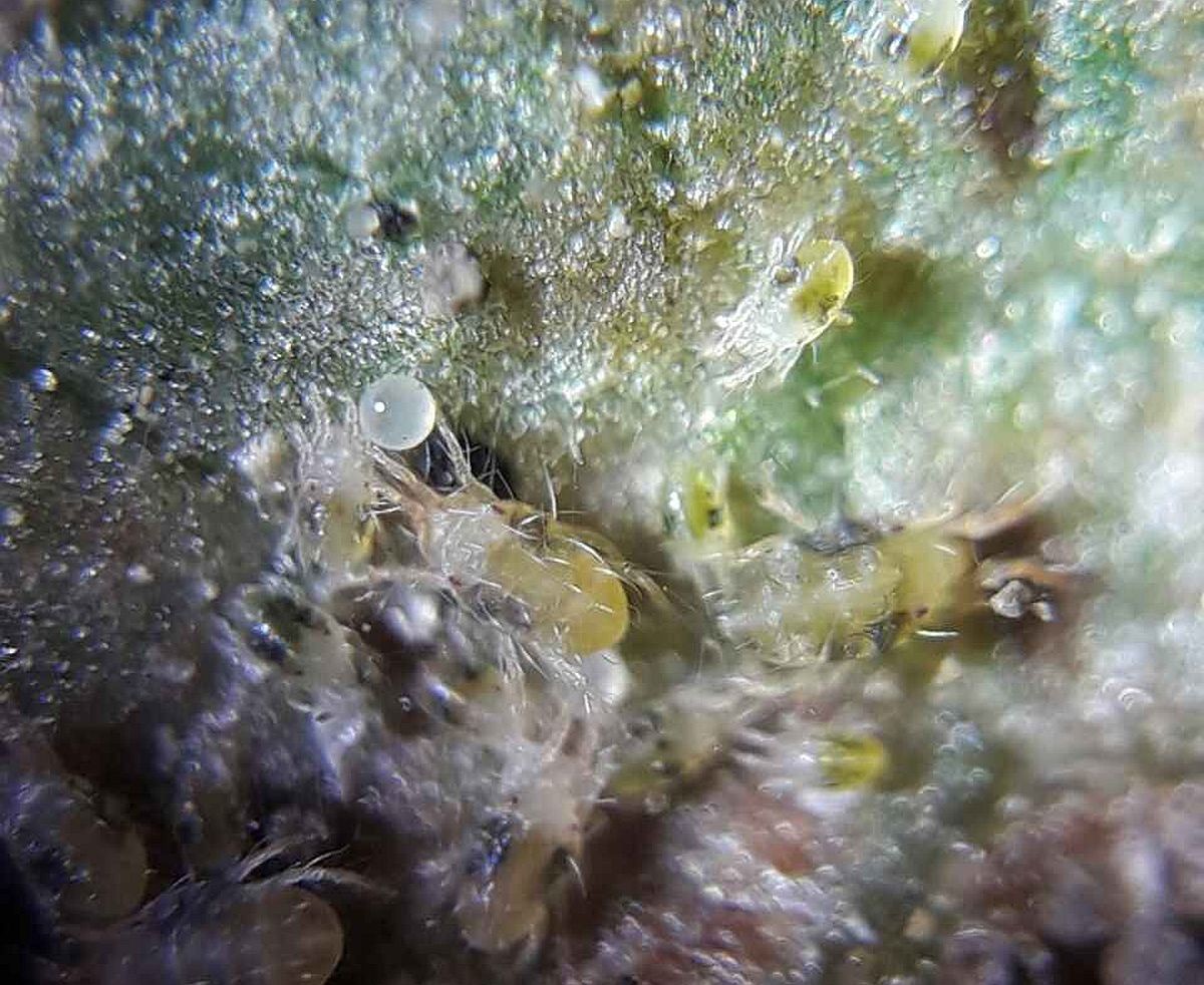 Ova štetočina se hrani biljnim sokovima na mladim izdancima ili na plodovima i ima usni aparat za bodenje i sisanje. Napadnuti plodovi oko mesta uboda menjaju boju u žutu ili braon i takvi plodovi nemaju tržišnu vrednost.