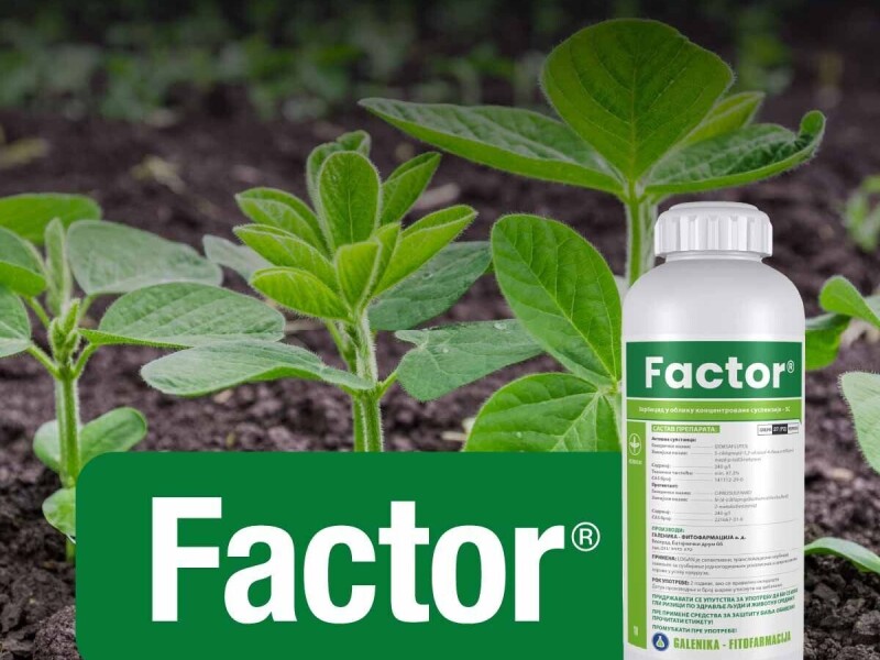 FACTOR se primenjuje u usevima soje posle setve, a pre nicanja (PRE-EM). Efikasno suzbija lipicu, štir, pepeljugu, tatulu, gorušicu, pomoćnicu, bocu, sivi muhar i mnoge druge korove u soji!