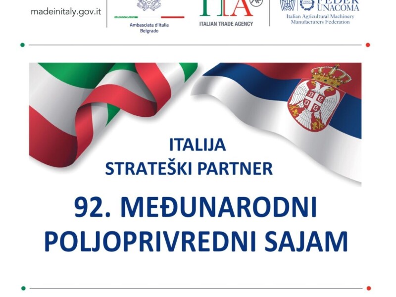 Italija – strateški partner na 92. Međunarodnom poljoprivrednom sajmu u Novom Sadu. Na linku pogledajte koje firme učestvuju na italijanskoj kolektivnoj izloži u HALI 1: https://bitly.cx/7Ho2A