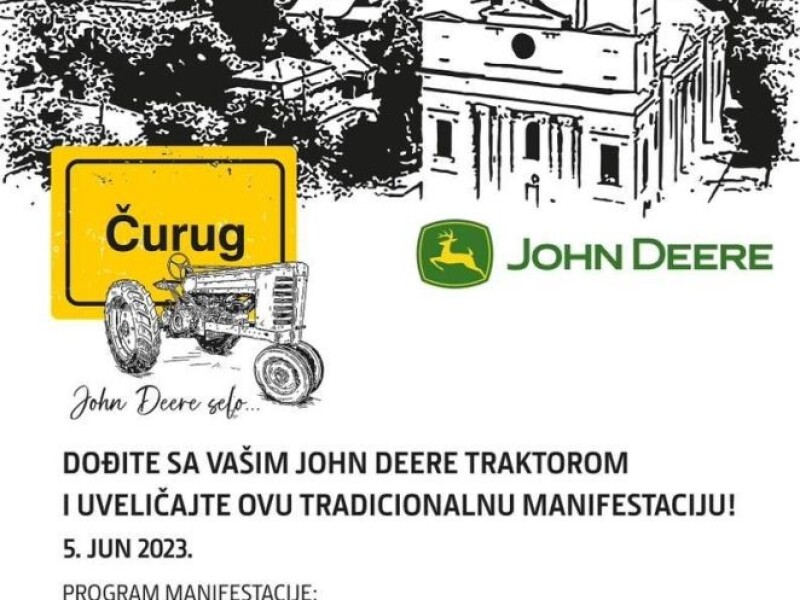 Sa zadovoljstvom Vas pozivamo na tradicionalni 8. John Deere Bal, koji će se održati 5. juna 2023. u Čurugu, poznatim i kao mesto sa skoro najvećim brojem John Deere mašina u Evropi - u odnosu na broj stanovnika.