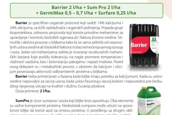 Osim izbora sorte, ključnu ulogu u postizanju visokih prinosa ima i tehnologija proizvodnje. Sve učestalija primena folijarnih đubriva, biostimulatora i bioprotektora omogućava jačanje biljaka i njihovo aktivno učešće u borbi protiv nepovoljnih klimatskih uslova i štetnih organizama. Stvaranjem najpovoljnijih uslova za razvoj biljaka omogućava im se postizanje maksimalnih genetskih potencijala.
