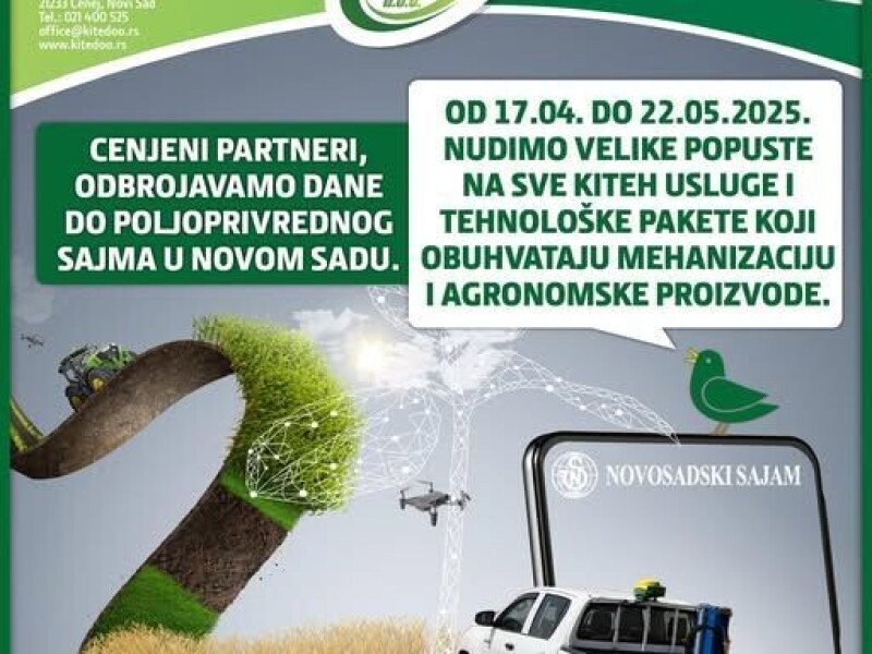 Od 17. aprila, pa sve do kraja 92. Međunarodnog poljoprivrednog sajma, pružamo Vam izuzetne popuste na sve tehnološke pakete koji podrazumevaju objedinjenu ponudu KiTeh usluga i proizvoda iz sektora “Mehanizacija“ i „Agronomija“.