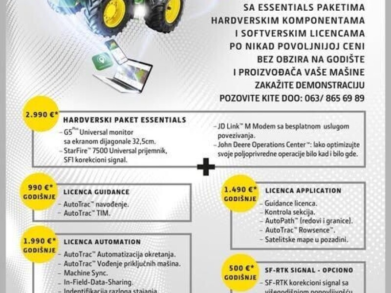 Sada je to jednostavnije i pristupačnije nego ikad, uz specijalnu cenu Precision Ag Essentials paketa - najsavremeniji hardverski komplet po specijalnoj ceni i sa vremenski ograničenim licencama.