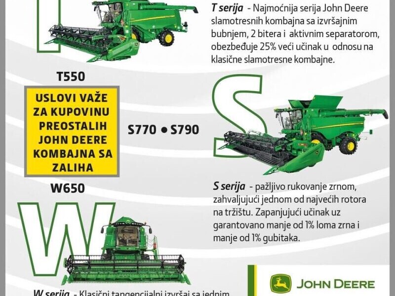 SAMO ZA KUPOVINU PREOSTALIH JOHN DEERE KOMBAJNA SA ZALIHA - Za detaljne informacije u vezi sa aktuelnom ponudom -