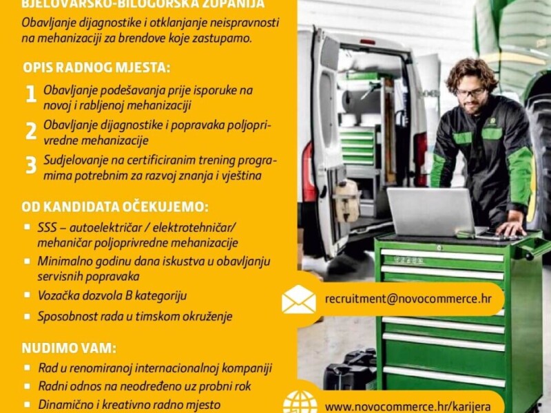 Naša servisna ekipa u poslovnici Bjelovar traži pojačanje 🧑🔧🔩 Ako se vidiš u našem timu, javi se 👇📞 https://novocommerce.hr/karijera/ #novocommerce #johndeere