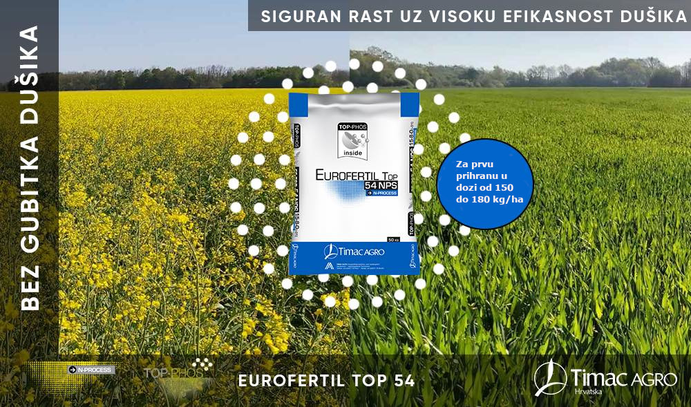 Osim toga, EUROFERTIL TOP 54 ima i prednost u odnosu na ostala gnojiva što zbog oblika dušika i njegove zaštite ne uzrokuje značajnije gubitke i nakupljanje dušika u tlu već ga iskorištava biljka, do čega bi moglo doći pri korištenju tradicionalnih dušičnih gnojiva.