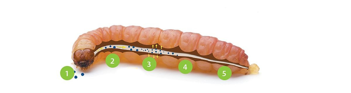 CARPOVIRUSINE EVO 2 nema kontaktno delovanje, nego ga gusenica mora hranjenjem pojesti, kako bi on mogao razviti svoje želudačno delovanje. Da bi se to postiglo listovi i plodovi moraju biti dobro pokriveni sredstvom.