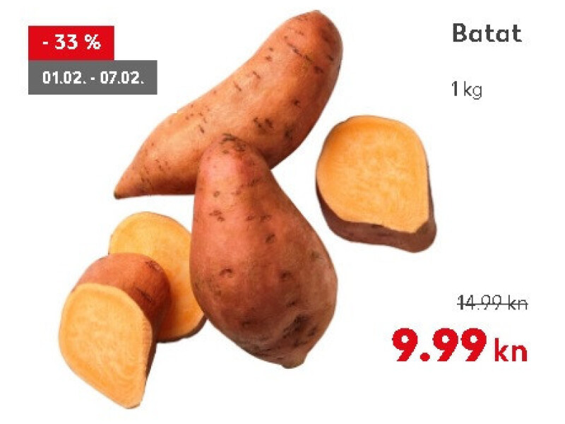 U trgovinama Kauflanda od 1. do 7. veljače nabavite batat s hrvatskih polja po akcijskoj cijeni. Požurite, izaberite svoju omiljenu sortu i uživajte u okusima! Dobar tek!