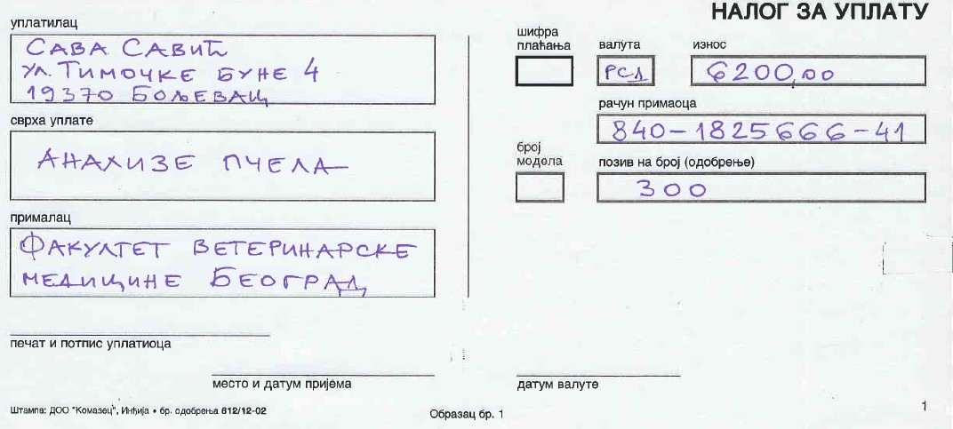 Uz uzorak je obavezno poslati uplatnicu sa uplaćenom sumom od 6.200 dinara.