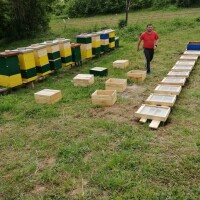 "Iznajmili smo vikednicu u selu Jazak, pozicija pčelinjaka je takva da za sad ne moramo da selimo pčele jer ovde u okruženju imaju sve što im treba. Okruženi smo voćnjacima, imamo i tu prvu voćnu pašu, potom sledi bagrem, lipa i na kraju livada. Imamo tri odlične paše, voćnu ne skidamo, kupcima nije interesantan taj med ali je paša odlična za razvoj legla", započinje svoju priču Slobodan.