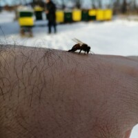 "Ova zima bila je nesvakidašnja, nije bilo snega, a temperature su bile visoke i matica je počela ranije da leže jaja, došlo je do ubraznog razvoja legla i velikog broja pčela, stvorio se takav uslov da smo mi morali dva puta da dodajemo pogaču zato što je mart prevrtljiv i sigurno im je nedovoljno hrane u ovom periodu i to je zadnji posao koji smo uradili pre neki dan na pčelinjaku."