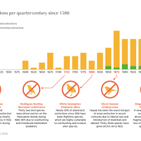 Brojnost šumskih vrsta u Japanu pala je za čak 94 odsto, a vrsta vlažnih staništa za 88 odsto, u odnosu na stanje 1850. godine. Brojnost grabljivica u Keniji pala je za 70 odsto između 1970. i 2020.