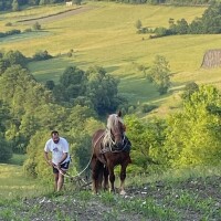 Na ispaši je trenutno dvadesetak goveda i šest konja - vernih pomoćnika na njivi bez kojih špartanje ne bi ni bilo moguće. Riđo, koji mu pomaže ovih dana, mešavina je hrvatskog hladnokrvnjaka i bosanskog planinskog konja.