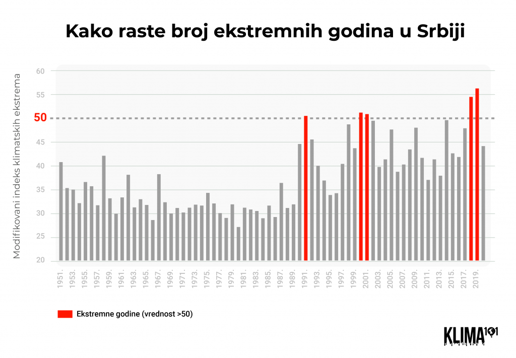 Šta godine 2000, 2001, 2014, 2018. i 2019. imaju zajedničko? Kako ukazuje savremena meteorologija, ove godine su one koje su u poslednjih četvrt veka bile - ekstremne. Preciznije: tokom njih bilo je zabeleženo između 30 i 50 odsto više ekstremnih prilika (suša, toplotnih talasa, obilatih padavina) u odnosu na prosek druge polovine 20. veka, piše za Klimu 101 doktorantkinja na Fizičkom fakultetu u Beogradu Milica Tošić.