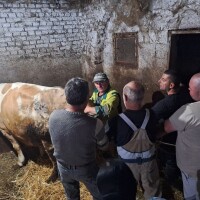 U štali je trenutno jedna junica i šest krava od kojih jedna od njih, Maza, treba da se oteli svakog momenta, druga za desetak dana i tako redom. I dok razgovaramo o tome kako se koja od njih zove, pridružuju nam se meštani iz komšiluka koji su došli da pomognu pri teljenju.