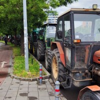 Više desetina poljoprivrednika sa preko 50 traktora okupilo se danas (16.5.) ispred Novosadskog sajma u znak protesta što Vlada nije uvažila njihove zahteve na jučerašnjem sastanku. Policija prati čitav događaj, a prolaznici snimaju, fotografišu traktore i razgovaraju sa poljoprivrednicima o razlozima protesta.