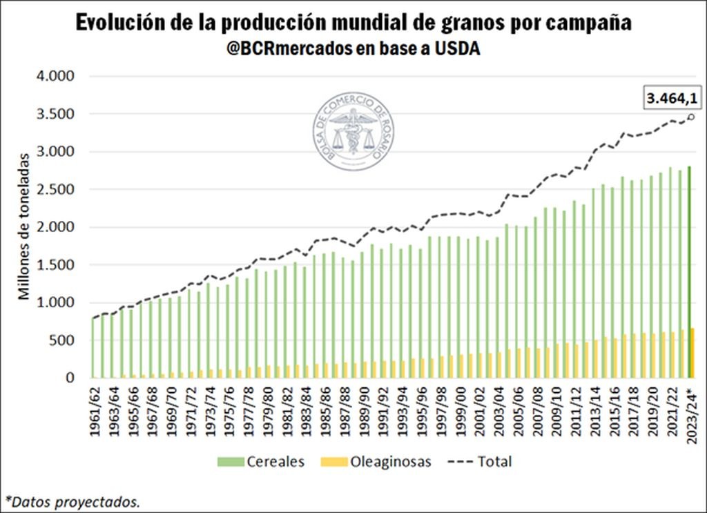 Proizvodnja žitarica na svetskom nivou bi u 2024. mogla dostići 3.464,1 milion tona, što je povećanje od dva odsto u odnosu na prethodnu godinu, navodi se u studiji koju je objavila argentinska berza Rosario temeljeći je na izveštaju Ministarstva poljoprivrede Sjedinjenih Država USDA. On pokazuje da je rast rezultat povećanja proizvodnje ključnih žitarica kao što su kukuruz, sirak i pirinač.