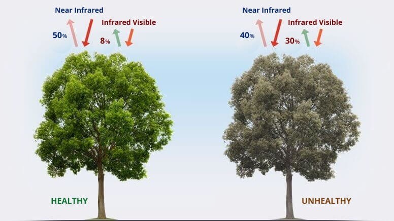 Hlorofil u biljkama najviše apsorbuje crveni i plavi deo spektra, a reflektuje zeleno pa su iz tog razloga zdrave biljke zelene. Osim zelenog dela spektra, biljke reflektiraju i blisko infracrveni (skrećeno NIR od eng. near infrared) deo (780 nm do 2500 nm), ljudskom oku nevidljiv. Ta se NIR traka koristi u formulama kod zbira vegetacijskih indeksa.