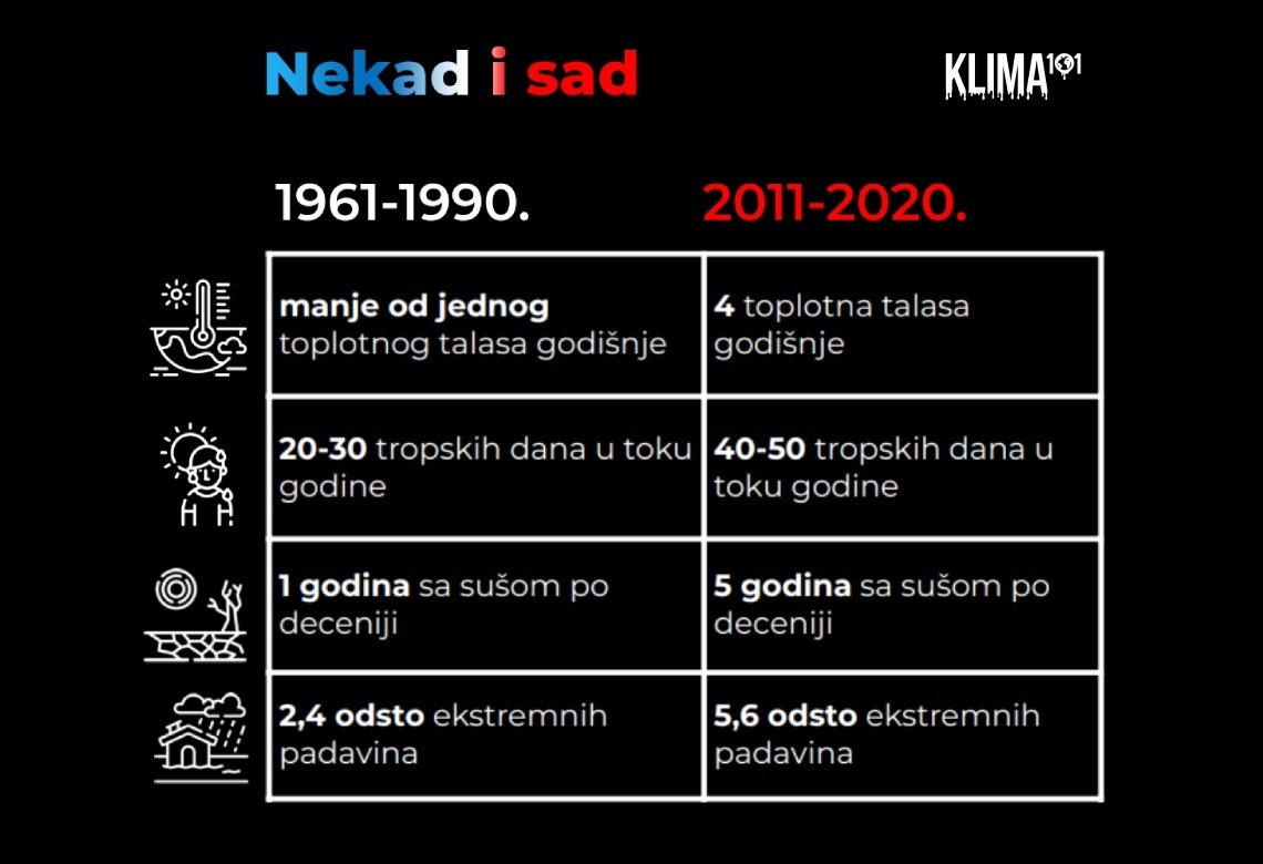 Danas, ovaj podatak zvuči kao zaista davna prošlost. Dakle, u poslednjoj deceniji ovaj prosek porastao je na čak četiri toplotna talasa godišnje, a u deceniji između 2011. i 2020. bilo je čak šest godina sa više od četiri toplotna talasa između januara i decembra.