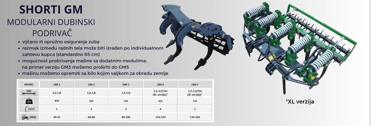 1 awemak SHORTI GM podrivaci tel. .+381 62 964 95 94 specifikacija : - 1-5 radnih tela opremljeni zastitom - radna sirina do 3 metra - okvir ojacani od visko kvalitetnog celika 200 x100 mm - mogucnost postovljanje osovine - radna tela od visoko kvalitetnog HARDOX celika - dodatna radna tela se mogu yategnuti GM1 I GM 2 - razmak izmedju radnih tela 65 cm dodatna oprema : - opruzna zastita - potporni tockovi 175 /70 /R13 -potporni tockovi R15/200 - led osveljenje 1 GM 1 -radni zahvat 1,6-1,8 -broj radnih tela 1 - razmak izmedju redova - - snaga traktora 30-35 - tezina 450 2 GM 2 -radni zahvat 1,6-1,8 -broj radnih tela 2 - razmak izmedju redova 130 - snaga traktora 60 -70 - tezina 500 3 GM 3 -radni zahvat 1,6 - 1,8 -broj radnih tela 3 - razmak izmedju redova 65 - snaga traktora 95-105 - tezina 550 4 GM 4 -radni zahvat 2,3 -2,5 -broj radnih tela 4 - razmak izmedju redova 65 - snaga traktora 130-140 - tezina 650 cena 5 GM5 -radni zahvat 2,5 -3,0 -broj radnih tela 5 - razmak izmedju redova 65 - snaga traktora 165-175 - tezina 720 ZA CENE POZOVITE MASINE SU POLJSKE IZUZETNOG KAVLITETA VISOKOKVALITETNI CELIK KALJEN OTPORAN NA HABANJE POZOVITE DA SE DOGOVORIMO tel. 062 964 95 94 tel. +381 62 964 95 94 2 awemak ATOM GT podrivac tel. +381 62 964 95 94 standardna oprema : - broj radnih tela podrivaca 4 ili 6 -radni yahvat 3 metra - pojacani okvir visoko kvalitetnog celika 200 x100 mm - mogucnost dodavanje jos kedne masine - mogucnost rada u prednjem polozaja na tri tacke - maksimalna radna dubina 450 mm - dleta harox celik 40/60/80 mm dodatna oprema : - led osvetljenje 1 GT 30.4 - radni zahvat 3 metra -broj radnih tela 4 - tezina 420 kg - snaga traktora 60-120 ks 2 GT 30.6 - radni zahvat 3 metra - broj radnih tela 6 - tezina 500 kg - snaga traktora 90-140 ZA CENE POZOVITE MASINE SU POLJSKE IZUZTNOG KVALITETA VISOKOKVALITETNI CELIK KALJEN OTPORAN NA HABANJE POZOVITE DA SE DOGOVORIMO tel. 062 964 95 94 tel. +381 62 964 95 94 3 awemak RAMBO RP podrivaci tel. +381 62 964 95 94 standardna oprema : - raonici sa izmenljivim radnim elemntima -klirans ispod rama 920 mm -raymak iymedju redova raonika 900 mm - hidraulicna podesiva radna dubina 10-65 cm - dupli jez valjak fi 450 - zastita od preopterecenja - osiguraci od preopterecenja + dodatni osiguraci - podesiv prednji ugao osovine dodatna oprema : - led osvetljenje - bocna zastita 1 PR 25.5 - radni zahvat 2,5 metra - broj radnih tela 5 - radna dubina 10 -65 cm - tezina kg 2100 - snaga traktora 160-230 - ucinak HA/h 2.0-3.0 2 PR 30,7 - radni zahvat 3,0 metra - broj radnih tela 7 - radna dubina 10 -65 cm - tezina kg 2300 - snaga traktora 240-290 - ucinak HA/h 2.0-3.0 3 PR 40.0 - radni zahvat 4,0 metra - broj radnih tela 8 - radna dubina 10 -65 cm - tezina kg 3100 - snaga traktora 270-370 - ucinak HA/h 2.5 - 4.0 ZA CENE POZOVITE MASINE SU POLJSKE IZUZETNOG KAVLITETA OD VISOKOKVALITETNOG CELIKA KALJENI OTPOTRNE NA HABANJE POZOVITE DA SE DOGOVORIMO tel. 062 964 95 94 tel. +381 62 964 95 94 IMAMO JOS MODELA PODRIVACA