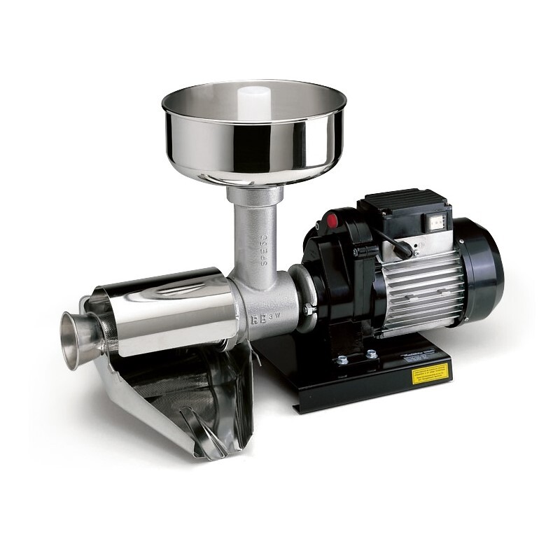 Električna pasirka za paradajz N5 600W italijanskog brenda Reber dizajnirana je za brzo i efikasno pasiranje paradajza, voća i povrća. Namenjena manjim restoranima i domaćinstvima, omogućava Vam da jednostavno pripremite sokove, sosove, marmelade i pasirani paradajz uz profesionalne rezultate. Snaga motora: 600W, indukcioni motor sa radom u oba smera. Kućište: liveni čelik sa epoksidnom zaštitom od korozije. Materijal: nerđajući čelik (INOX) – levak, sito i sabirna posuda. Standardno sito: 1,5 mm (izmenjivo – dostupno i 1,1 mm / 2,5 mm). Puž: acetatna smola, bezbedna za kontakt sa hranom. Kontinuiran i tih rad, idealan za dužu upotrebu. Pogodna za pasiranje paradajza, voća i povrća. Lako čišćenje i održavanje. Proizvedeno u Italiji. Garancija: 24 meseca. Pouzdana, snažna i jednostavna za korišćenje, Električna pasirka za paradajz N5 600W omogućiće Vam savršen kvalitet domaćih proizvoda uz minimalan napor i maksimalnu efikasnost.