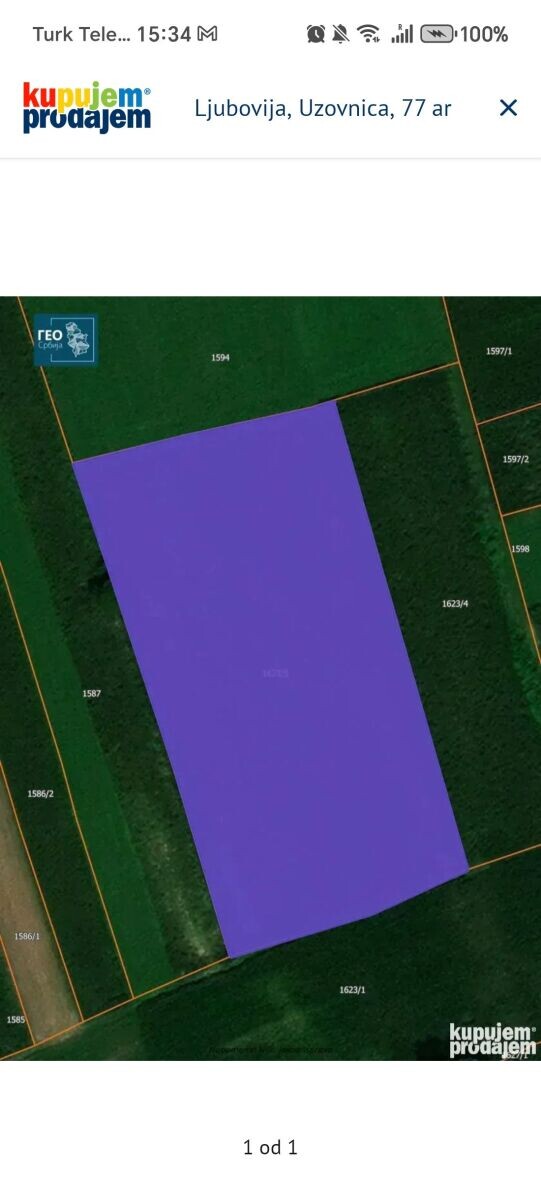 Prodaje se parcela od 77 ari u Uzovnici, Ljubovija, idealna za poljoprivrednu proizvodnju ili ulaganje. Nalazi se na mirnoj lokaciji, s odličnim pristupom. Prilika za sve zainteresirane za obrađivanje zemlje ili razvoj poljoprivrednih projekata!
