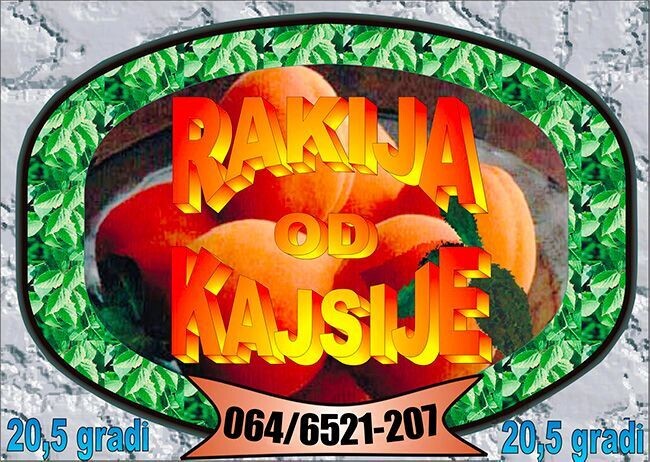 Voćne rakije: kajsija, kruška, breskva, šljiva (čiste/nemešane), prepečenice ekstra kvaliteta, iz sopstvenog voćnjaka (Novi Sad). Dugogodišnje iskustvo i proizvod konstantnog kvaliteta. Sve rakije su jačine oko 20.5 gradi (oko 52% alkohola). Rakija je pakovana u kanistere od 10 litara, ili u boce od 1 litar.