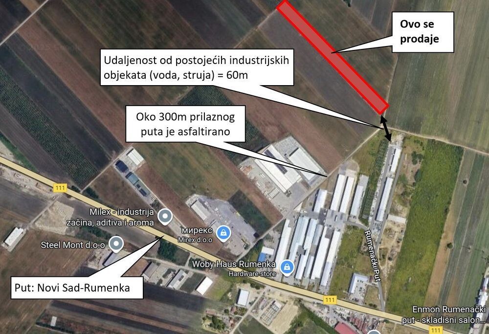 Zemljište pored puta Novi Sad – Rumenka, 550m od glavnog puta (videti mapu).
