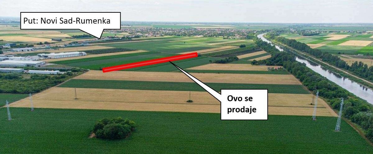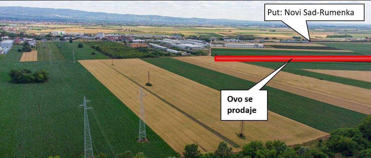 Zemljište pored puta Novi Sad – Rumenka, 550m od glavnog puta (videti mapu).