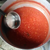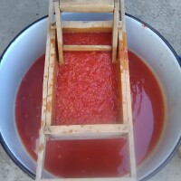 "Paradajz operemo, ostavimo da se ocedi, te ga pasiramo da se dobije čist sok. U njega se dodaje malo soli i šećera po ukusu i onda se kuva. Mi pravimo blagi sok, ljuti sa ljutom paprikom, kao i sok sa začinima - bosiljak, peršun i origano", rekao nam je naš sagovornik napominjujući da dužina kuvanja zavisi od količine u kazanu i jačine vatre.
