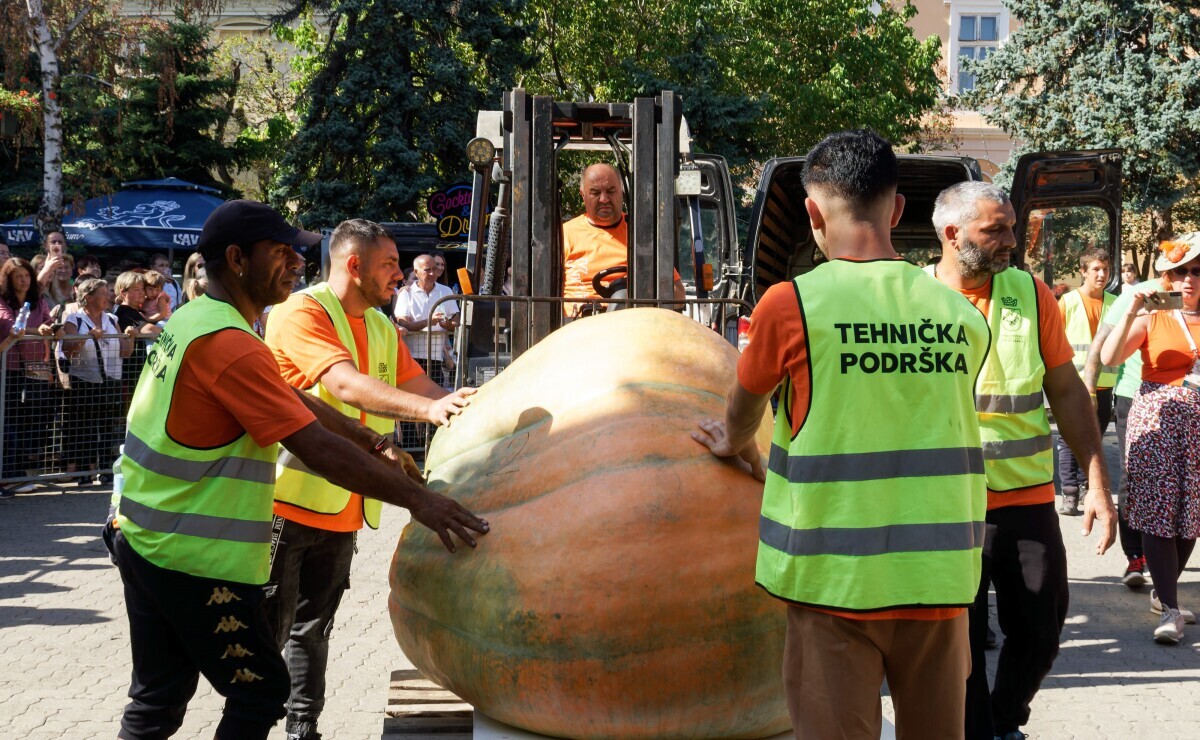 "Zadovoljstvo je posmatrati kako je svakog dana veća i veća, ali je problem izneti je iz plastenika i natovariti u kombi. Obično to radimo lagano viljuškarom ili desetak ljudi pomaže kako se ne bi oštetila", kaže naš sagovornik i otkriva gde je završila njegova džinovska bundeva.