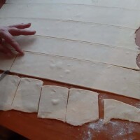 "Sve ove sastojke treba dobro sjediniti rukom tako da se dobije valjana loptica od testa koju potom treba razvući oklagijom. Na ovako razvučeno testo u tankom sloju naneti salo, koje je prethodno dobro izmeštano sa tri kašike brašna. Ovako namazanu koru odmah sakupiti u rolnicu i ostaviti da stoji dvadeset minuta. Ovaj postupak se mora ponoviti još dva puta kada treba voditi računa da se svo raspoloživo salo upotrebi."
