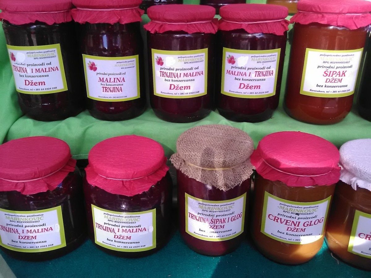 "Moja porodica se bavi organskom proizvodnjom maline na jednoj manjoj parceli, a kao u svakoj paorskoj kući imamo stabla različitog voća koja nikada nisu prskana, te pravim tokom sezone sokove, likere, sirupe, pekmeze i džemove kombinujući malinu sa belom trešnjom, ili kokosom, dunjom, šipkom, čia semenkama, crnom čokoladom, bobicama zove, a ovih dana u okolini sela, i na rubu šume berem trnjine i gloginje, koje su sad idealne nakon nekoliko mrazeva", kaže Marinkovićeva i dodaje da je najteže brati šipurak upravo zbog trnja ali nije lako brati i trnjine i gloginje obzirom da su žbunovi uglavnom na nepristupačnim mestima.