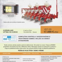 Kverneland Optima HD E-drive - 12km/h, pogon nezavisnim elektromotorima za brzu i preciznu setvu na pripremljeno i nepripremljeno zemljište, već od 17.490 eura +pdv. Automatska kontrola setve - Tellus go!