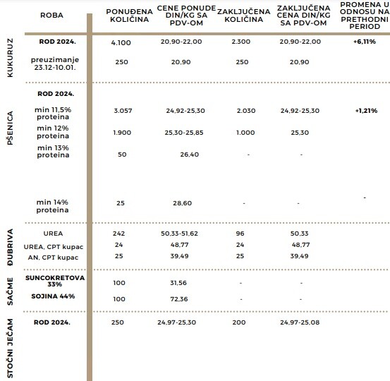 Do trgovanja je došlo i na tržištu mineralnih đubriva. Prometovana je UREA, po ceni od 44,34 do 45,74 din/kg bez PDV-a (378 do 390 €/t bez PDV-a) u zavisnosti od pakovanja i pariteta i AN, mađarski, na paritetu CPT kupac po ceni od 35,90 din/kg bez PDV-a (306 €/t bez PDV-a) za pakovanje 25/1.