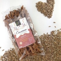 Speltino brašno je odličan izvor proteina i vlakana, zadovoljava do 20 odsto dnevnih potreba za ovim hranljivim sastojcima. Brašna nalaze široku primenu za pripremanje testenina različitih oblika, rezanaca za supu, kora za pitu. Mesečna proizvodnja gazdinstva kreće se oko tone i po brašna i testenina.
