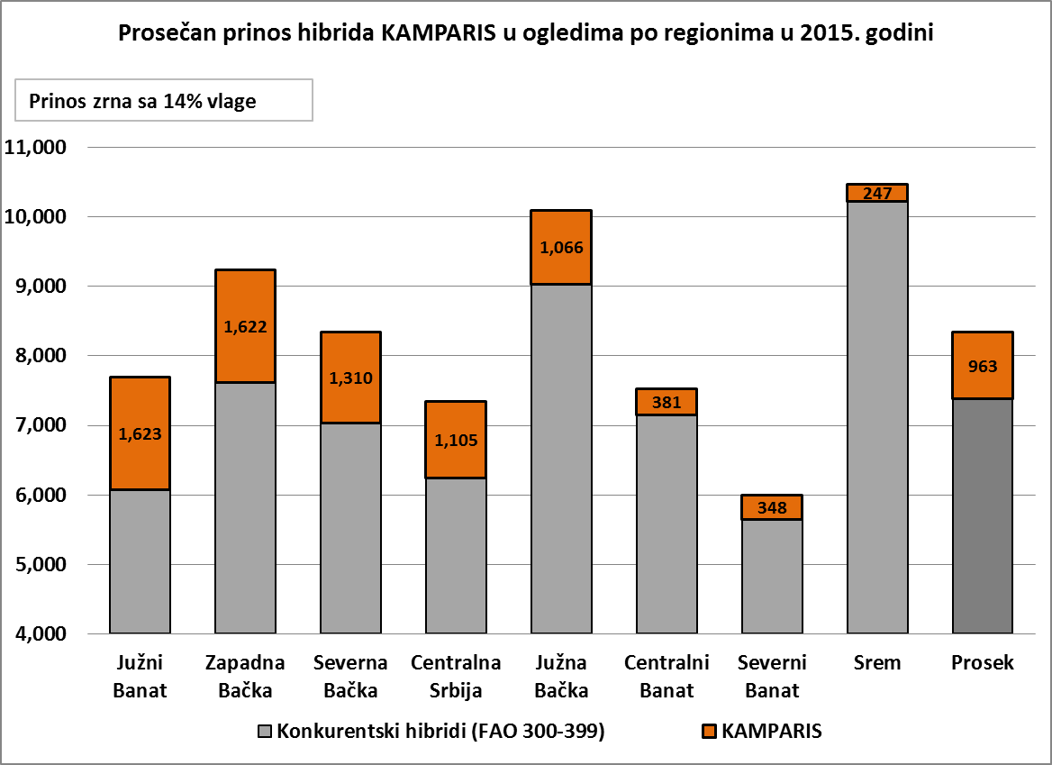 Na sledećim grafikonima, možete videti kakve su prosečne pojedinačne rezultate ostvarili novi hibridi po regionima u našoj zemlji u odnosu na konkurenciju.