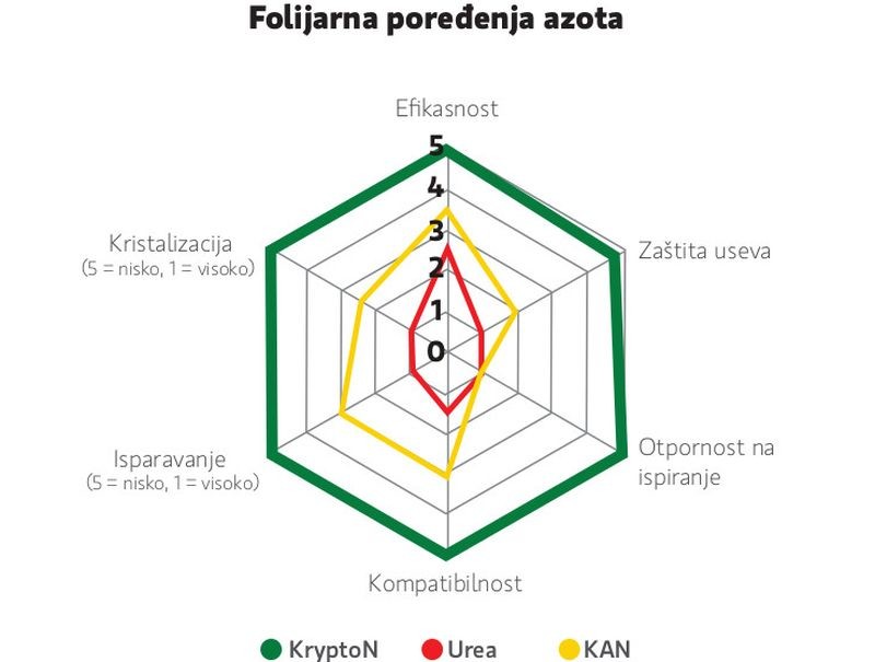 Folijarna đubriva koja kombinuju visoku efikasnost, izvrsnu sigurnost useva i prihranjuju biljku u periodu 6-8 nedelja. KryptoN formulacije mogu se koristiti kao deo prihrambenog programa koji se koristi zajedno s mirkogranulisanim đubrivima koja se koriste u toku setve.
