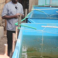 "Mi ovde na malom prostoru proizvodimo ribu koju filetiramo i prodajemo, a od nusproizvoda pravimo đubrivo za poljoprivredu i kolagen za industriju. Ovo je projekat koji je moguće uspostaviti u urbanim i ruralnim područjima, čak i u slamovima, a proizvodimo čist organski proizvod”, ističe osnivač Džek Ojugi.
