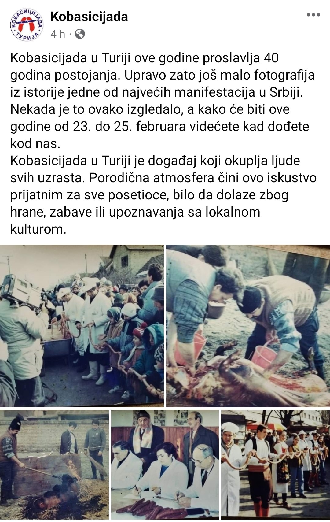 Turija ove godine priprema najveću Kobasicijadu do sada. Poslednjeg vikenda u februaru od 23. do 25. februara priprema se niz sadržaja, kako kažu organizatori na svom zvaničnom sajtu, kojima žele da svim gostima pokažu gostoprimstvo i potvrde kvalitet manifestacije koja je zasluženo dobila i nosi priznanje "Najbolje iz Vojvodine".