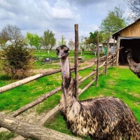 U dvorištu se šeta i emu, druga najveća ptica na svetu, odmah posle svog bliskog srodnika noja. Neletačice su i imaju meko, braon perje i duge vratove i noge. Kako kaže Kristina, emu voli da se mazi i jede iz ruke. Tu su patke mandarnike, najkrupnije kokoške - brame, golubovi, beli lepezani i grivaši, vodene kornjače i divlje patke.