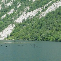 U najužem delu Drine dugom nekoliko desetine metara litice su pružaju visoko, tako da se samo vidi delić neba. A zatim Drina se polako širi. Pojavljuju se u prvi tragovi civilazacije - dalekovodi, visoko u stenama.