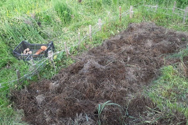 Za organsku đubrenje krompira najčešće se koristi stajsko đubrivo koji se obično u zemljište unosi u jesenje-zimskom oranju u količini od 25-35 t/ha. Stajsko đubrivo sadrži sve makro - (azot, fosfor i kalijum) i mikroelemente (bakar, cink, mangan i dr). Pozitivna svojstva organskog đubrenja stajnjakom ogledaju se u povećanju humusne komponente zemljišta i bržem zagrevanju zemljišta u rano proleće, kada su potrebne više temperature za rast i razvoj klice krtola.