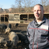 Marko Jevtić iz Veliko Orašja kod Velike Plane, bavi se uslužnim tovom svinja, a od nedavno se okrenuo i uzgoju domaćih autohtonih rasa. Na svojoj farmi u Krnjevu uzgaja moravke i resavke koje, čini se, uživaju jedući probranu hranu - voće i povrće.