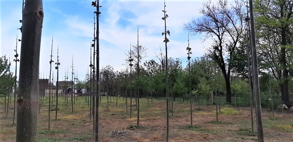 Prve godine kada su sadnice počele intenzivno da rastu na jednom broju skidali su srednji deo biljke kako bi se formiralo više bočnih grana. Tokom prve godine narasle su 1,5 m. Prošle godine jak vetar je slomio nekoliko mladih stabala, ali su ona ostala živa i nastavila da rastu obzirom da su oko korena krenuli zaperci.