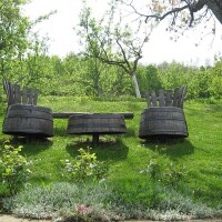 Ukoliko bakine škrinje više nisu za kućnu upotrebnu, ako ih je napao žižak ili jednostavno zub vremena, dovoljno je da se malo ukrase bojama i služiće u dvorištu bar još jednu deceniju. Odlične su i stare natkasne koje godinama premeštate iz podruma na tavan, kao i bačve koje su odradile svoj posao. Prepolovljene mogu da se pretvore u garnituru za sedenje.