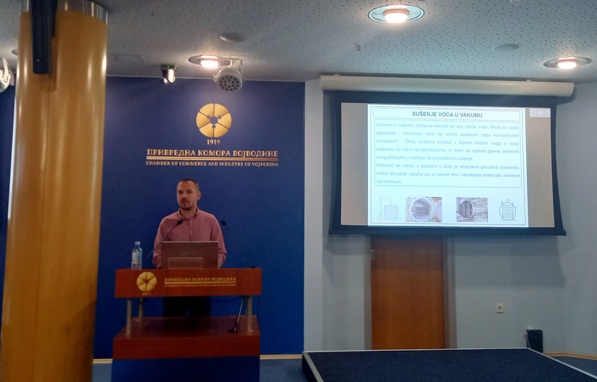 "Ovaj način sušenja je pogodan i za jagodičasto i bobičasto voće, ali je i skuplji proces od ostalih. Voće mora da bude prethodno zamrznuto pa zagrevanjem lesa na kojima se nalazi, polako prelazi iz područja leda u područje gasa. Na taj način se preskače tečna faza, što je prednost kod ovog sušenja, jer dobijeni proizvod nema oštećenja ćelija", rekao je Radojčin i dodao da je kod takvog sušenja bitno da se uradi kalibracija pre samog procesa.