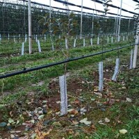 "Na ova dva hektara su četiri radnice odradile sav posao za dva dana, s tim da sam ja mrežice prethodno pripremio. Proces rada je takav da dve radnice idu uz svaki red, jedna nosi mrežice i pridržava, a druga heftalicom spaja oba kraja mrežice oko stabla."