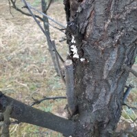 Na slikama u galeriji ispod teksta, vidi se kako su grane, tj. patrljci, potamnili od prošlogodišnje rezidbe.