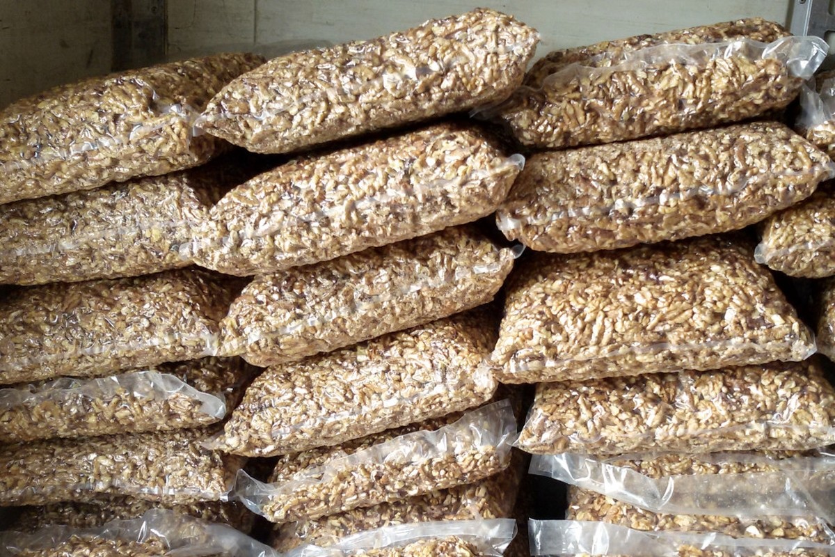 "Otac je još ranije napravio komoru za sušenje vozila, kada je napolju hladno, da bi se kola bolje osušila. Tu komoru smo iskoristili za sušaru. Orah stavljamo na lese, koje su poput rešetki veličine vrata, na njih poređamo jedan red i napakujemo sve u tu komoru i otprilike za noć osušimo oko dve tone oraha", objašnjava mladi Arnaut.